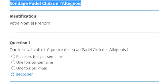 Un club de padel à Albi, ça vous tente ? Il se pourrait bien qu’un nouveau club de padel voit le jour dans le sud de la France. Cette fois-ci, ce serait le Padel Club Albigeois. Mais avant de voir concrétiser ce beau projet, n’hésitez pas à répondre au sondage :
