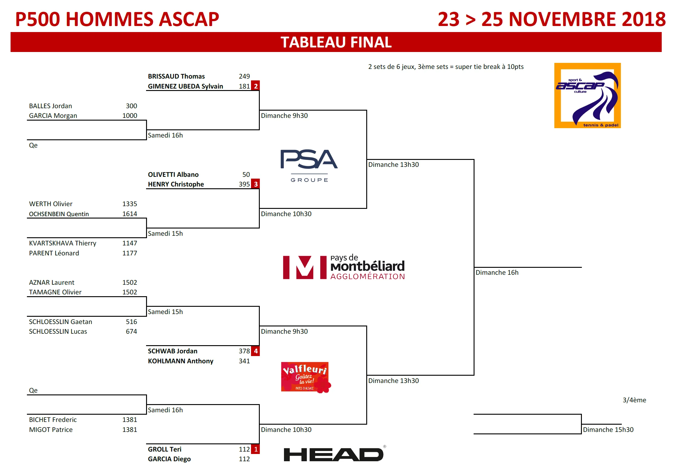 Retrouvez le tableau de qualification ainsi que le Tableau Final du P500 de l’ASCAP Montbéliard.