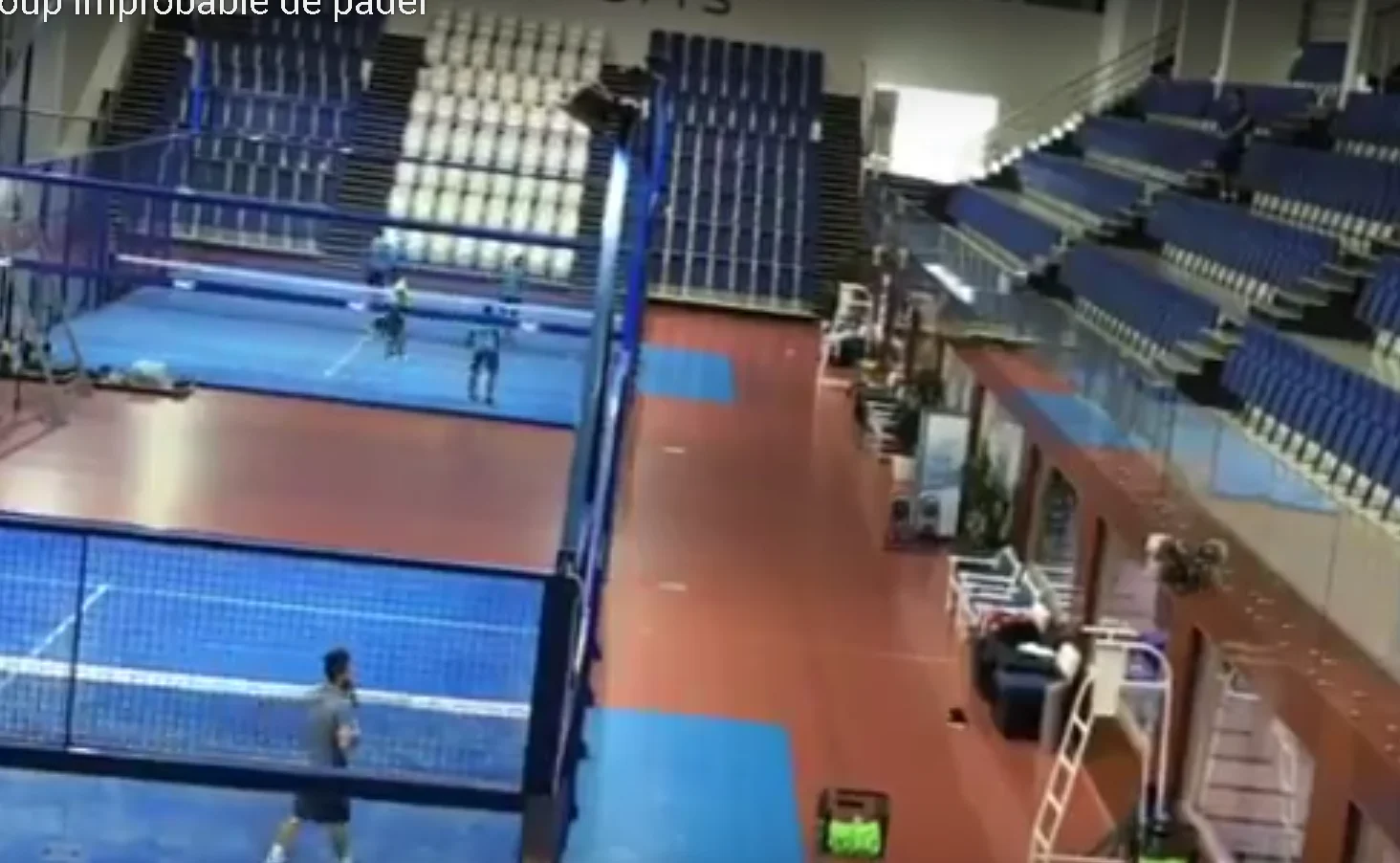 Qu’est ce que c’est que ça ?! Javier Lopez Garcia réussit à smasher à partir d’un autre terrain de padel. Bref, son smash PAR 3 est parfait. Le coup de poignet est bien là. Mais…