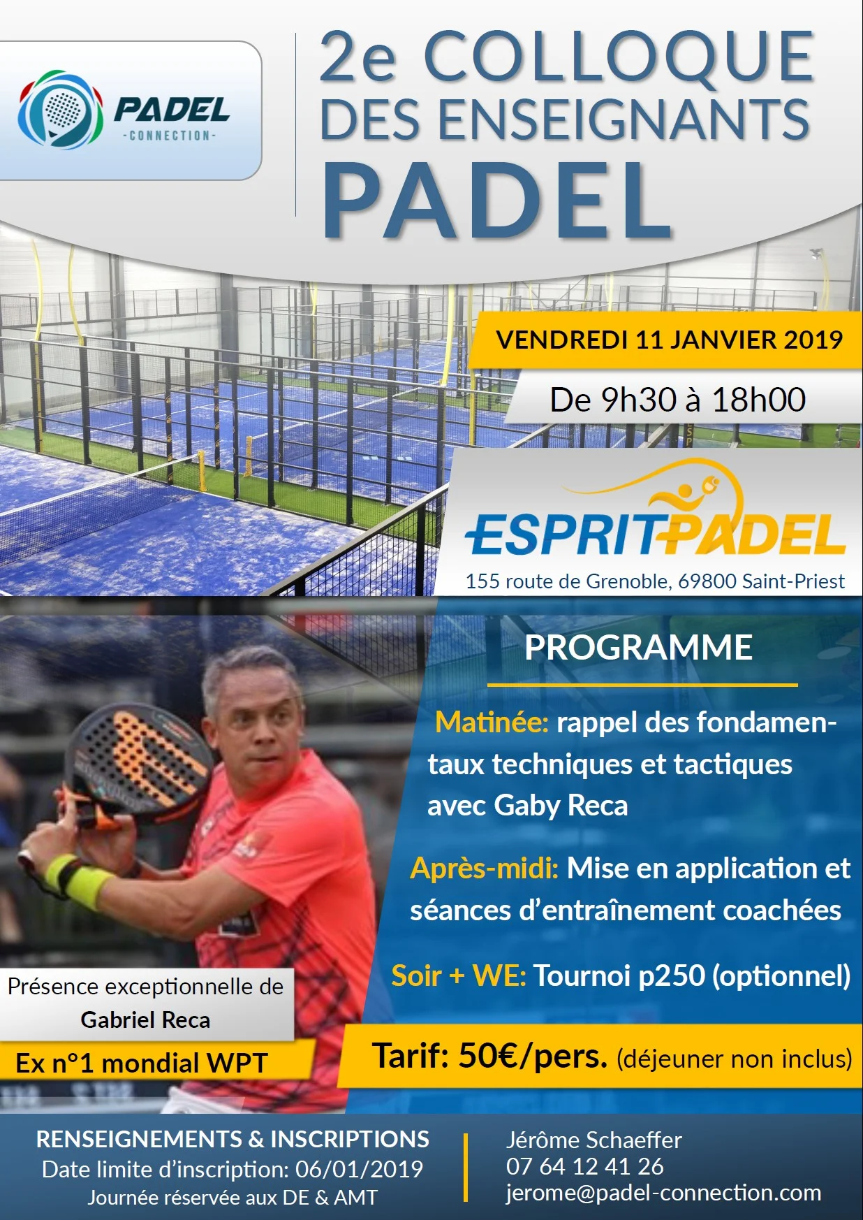 Vous êtes DE/AMT tennis ou padel ? Venez participer à une journée dédiée à l’enseignement du padel en compagnie d’experts, avec notamment la présence exceptionnelle de Gaby Reca, ancien n°1 mondial.