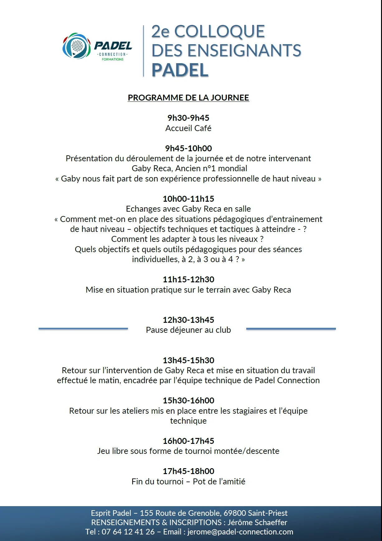 Padel Connection organise le 2e colloque des enseignants le vendredi 11 janvier à Esprit Padel.