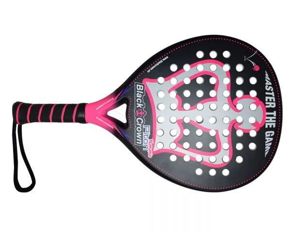 - Black Crown Piton Nakano, la pala de Marta Marrero. Un manche allongé pour faciliter le jeu à deux mains notamment pour le revers, cette pala ronde possède un équilibre parfait. Sa mousse est très bien étudiée pour permettre une frappe efficace.