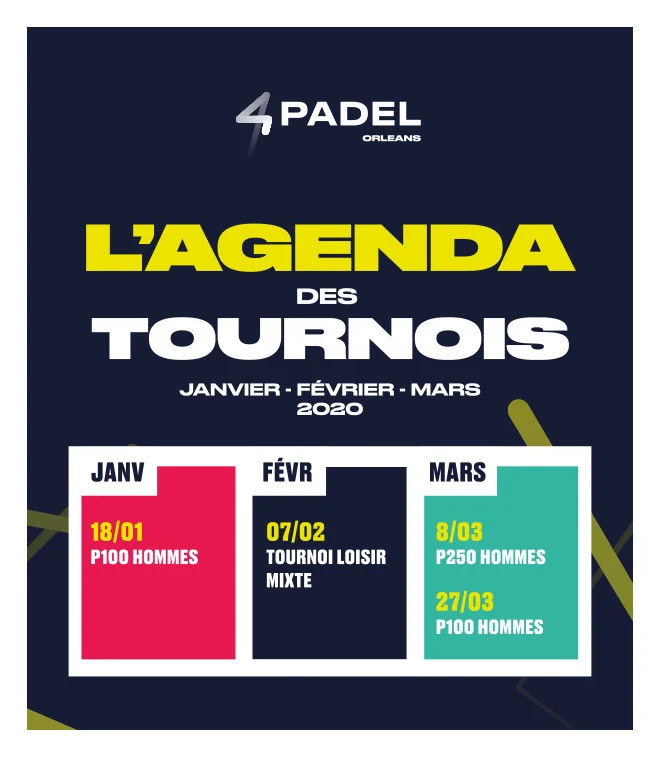 L’agenda du 4PADEL Orléans est déjà bien chargé avec de janvier à mars 4 épreuves de padel.