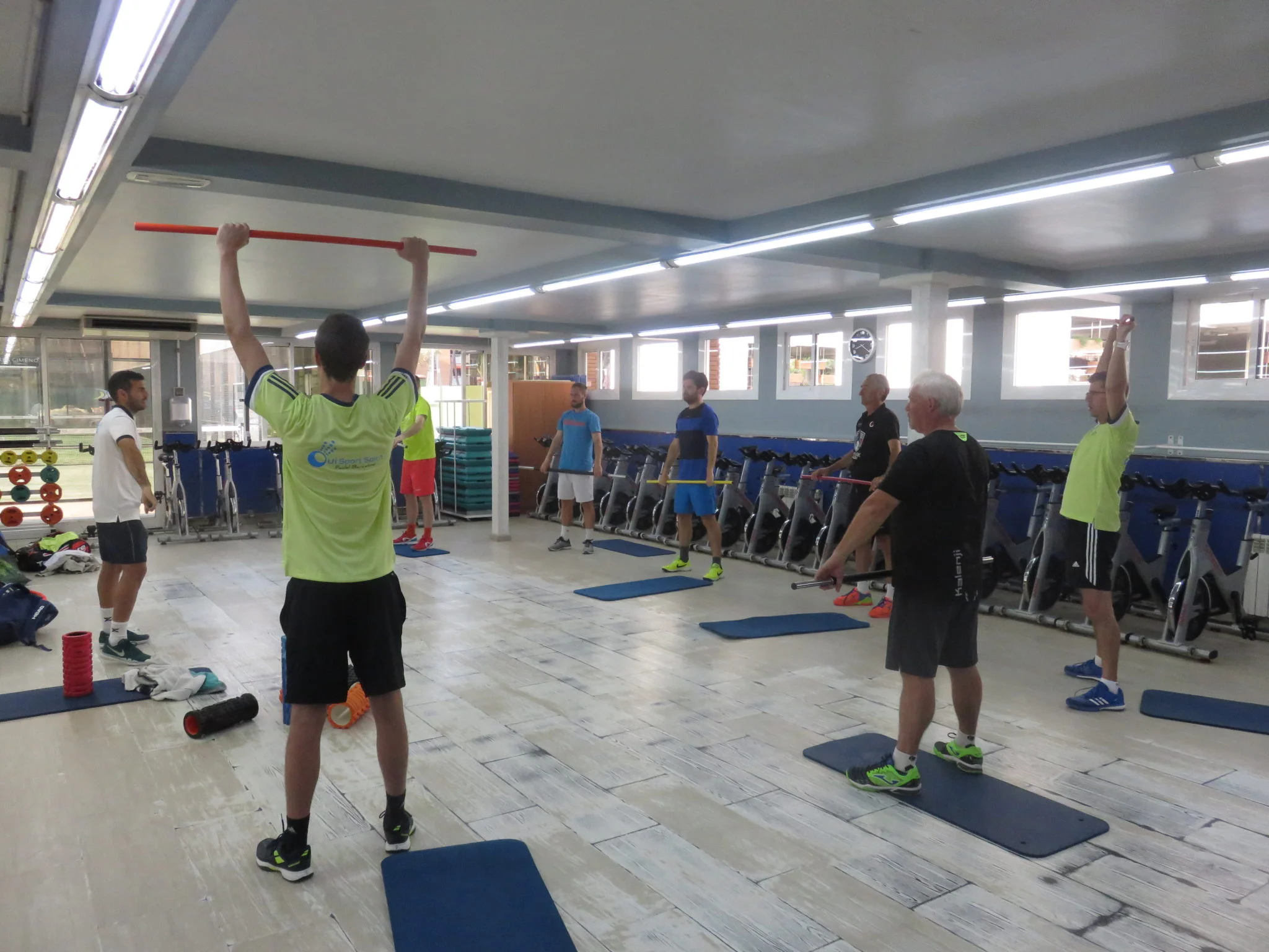 Changement de décor aujourd’hui, nous ne commencerons pas la journée sur le terrain mais dans l’une des salles de fitness de l’académie Gimeno.
