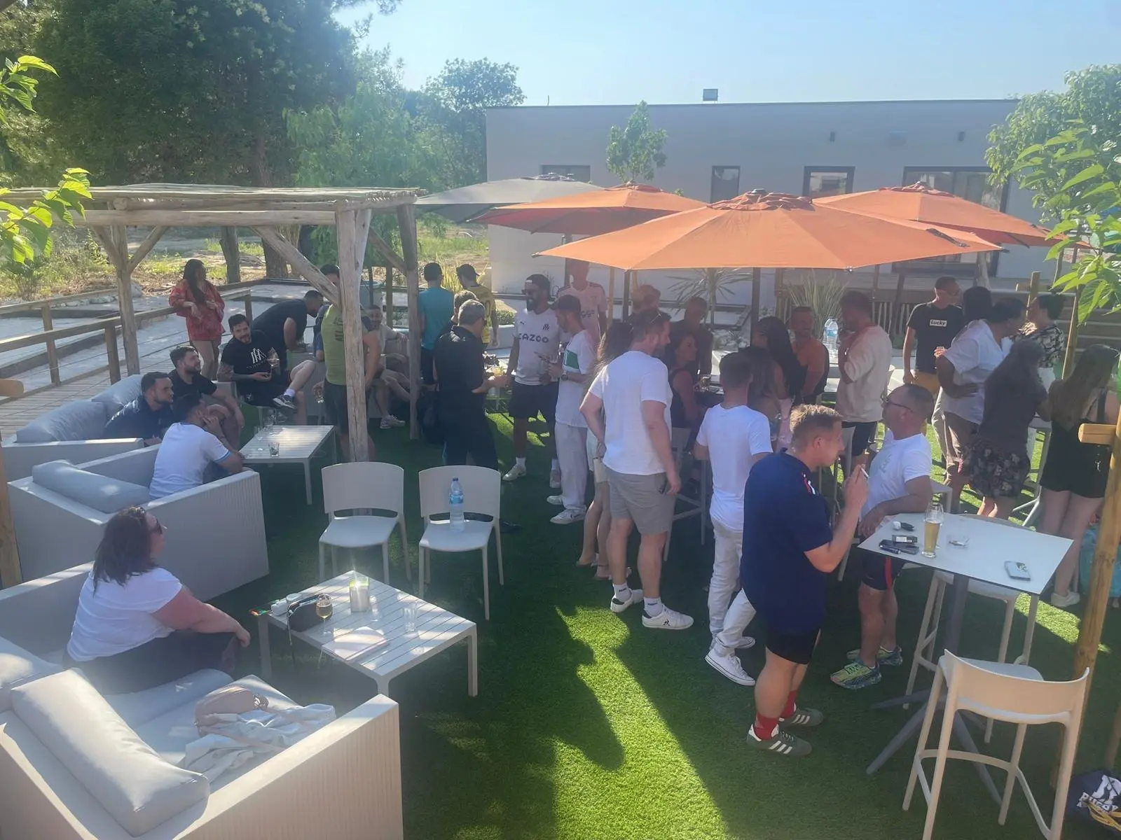 Le club dispose d’un clubhouse accueillant, avec bar et espace restauration, permettant de prolonger les moments de convivialité après les parties. Un rooftop vient compléter l’expérience, offrant un espace supplémentaire pour se retrouver, organiser des événements ou simplement profiter du cadre.