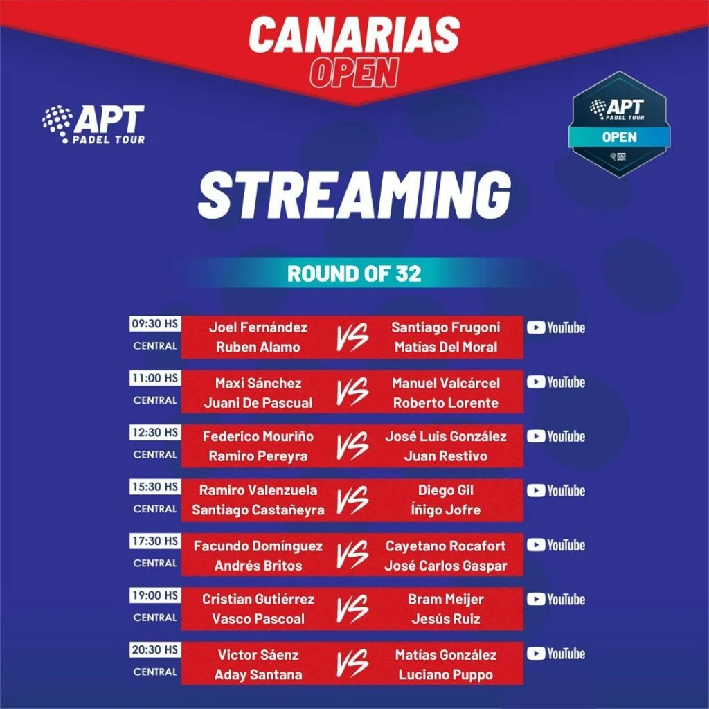 Suivez la suite des seizièmes de finale de l’APT Padel Tour Canarias Open, en direct de Tenerife.