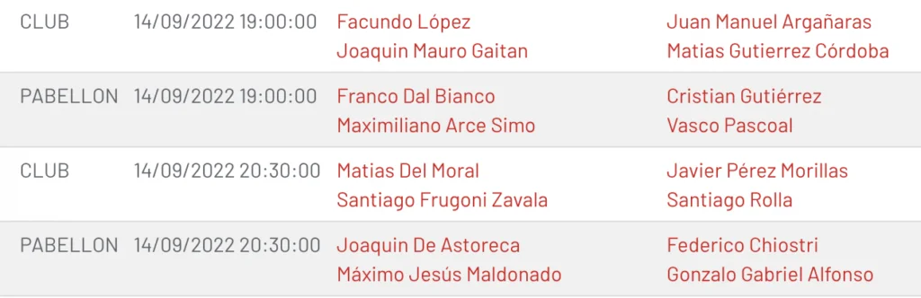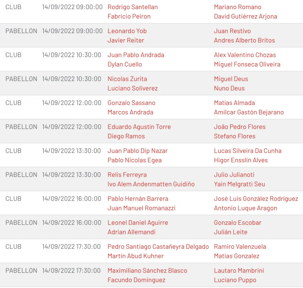 Leo Yob et Javi Reiter seront également dans le tableau avec une belle remontada en previas. Ils affronteront Restivo/Britos en première rotation sur le court central.