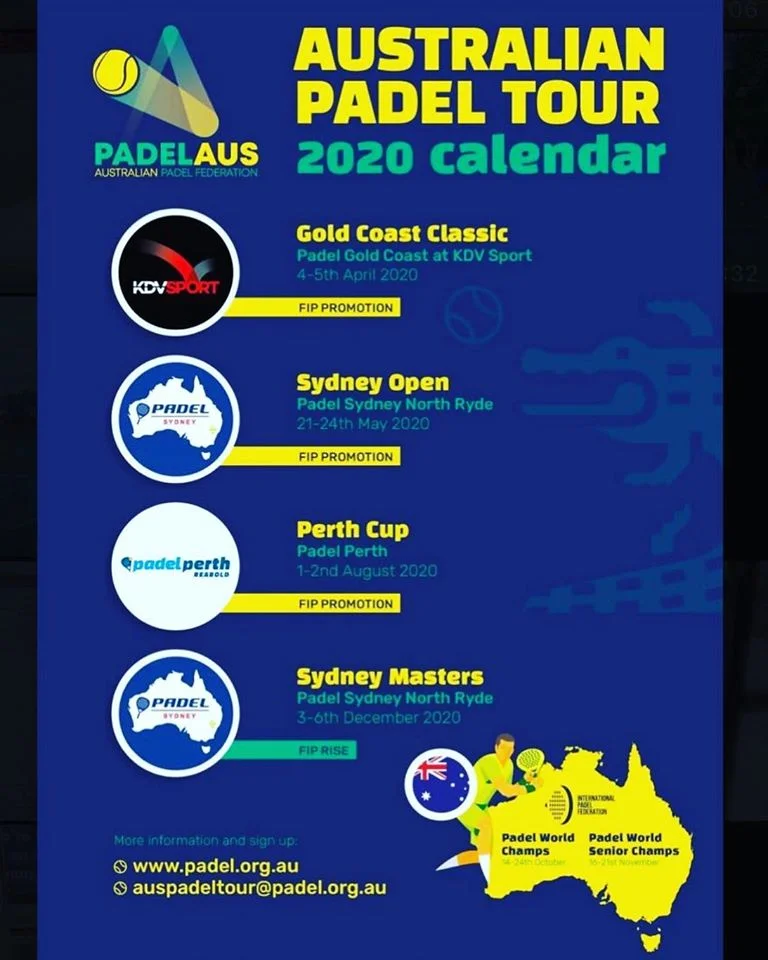 L´Australian Padel Federation nous fait part de son calendrier de tournois de padel pour la saison 2020. Même si la distance nous sépare, c´est tout de même du padel…