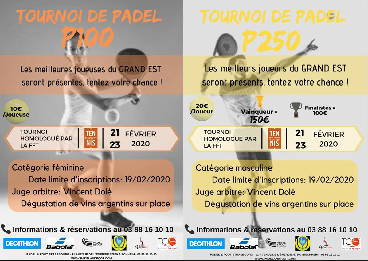 Fort d’un début d’année réussi avec déjà 2 tournois disputés, le Padel & Foot de Bischheim passe la vitesse supérieure ce weekend avec 2 épreuves : un P100 Femmes et un P250 Hommes ! Les…