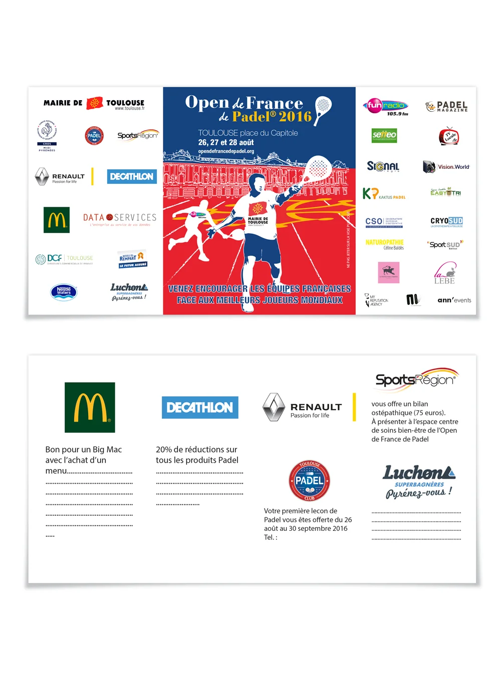 L’Open de France de Padel 2016 s’annonce être une grande fête du padel. Du 26 au 28 août à Toulouse, Place du Capitole, venez découvrir un sport en plein développement et encouragez les équipes de padel françaises face aux meilleurs équipes mondiales.