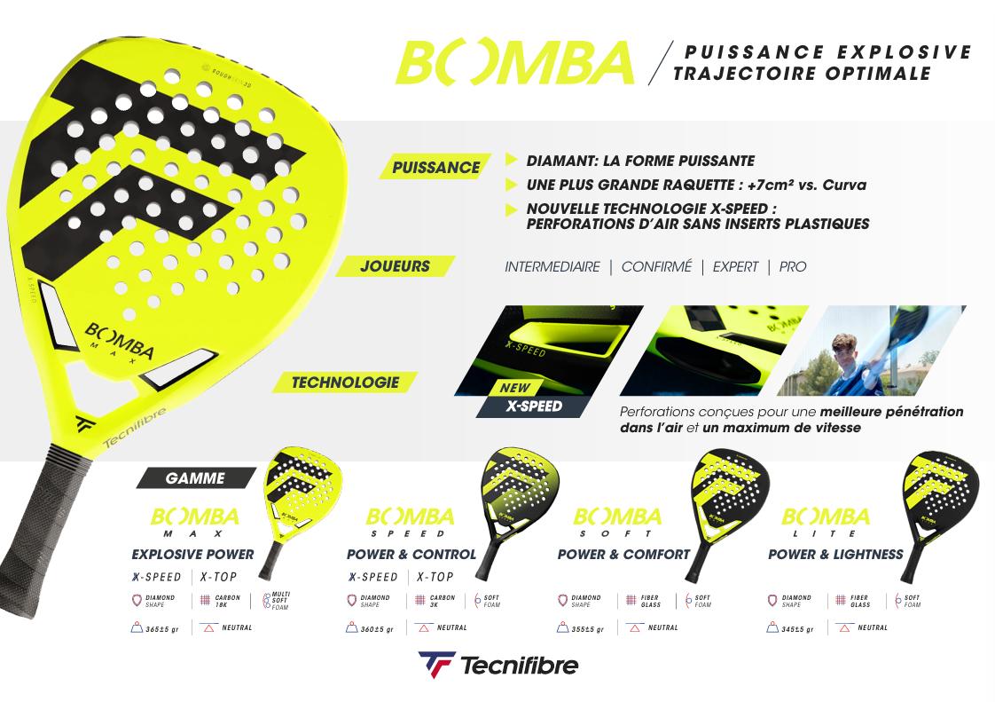 Avec la gamme Bomba, Tecnifibre ne se contente pas d’ajouter quatre nouveaux modèles à son catalogue. La marque propose une vraie vision du padel moderne, résolument tournée vers la performance offensive. Chaque raquette a été pensée pour un profil de joueur spécifique, créant une progression naturelle qui accompagne l’évolution du pratiquant.