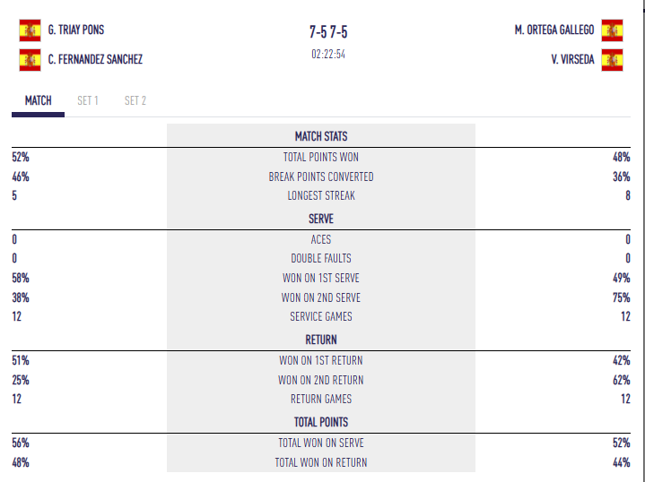 Avant le début des festivités prévues fin juin 2025, la paire Triay / Fernandez s’était imposée en deux sets : 7/5, 7/5 après plus de 2h22 de jeu, face à la paire Ortega / Virseda.