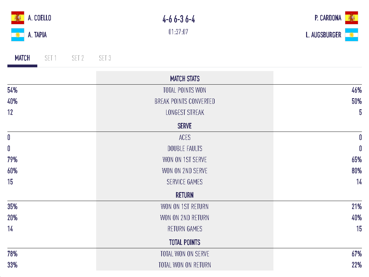 Coello et Tapia ont dû s’employer pour obtenir leur ticket pour les demi-finales après un match accroché : 6/3 5/7 6/3 en seulement 1h37.