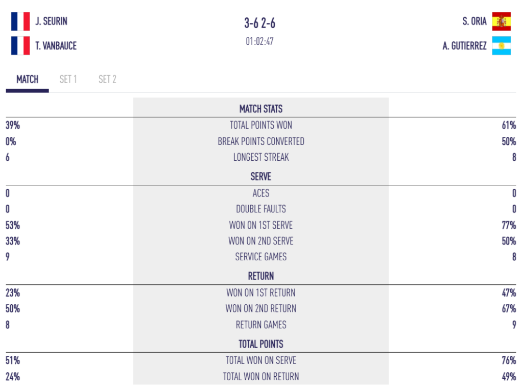 Face à une paire plus expérimentée, les Français ont été dominés dans l’ensemble du match. Ils n’ont pas réussi à installer leur jeu face à une équipe solide qui a su imposer son rythme du début à la fin.