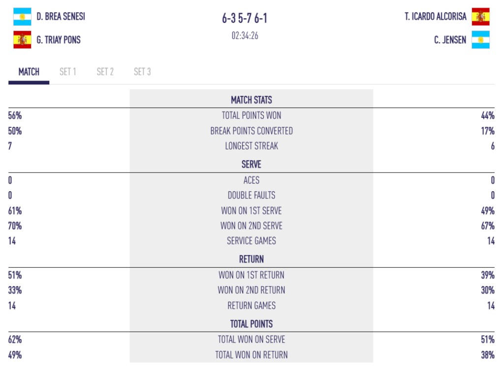 Mais Icardo / Jensen ne lâchent rien. Plus patientes, plus solides dans les échanges, elles font durer les points. Jensen, gauchère, commence à peser offensivement, tandis que Triay / Brea se crispent.