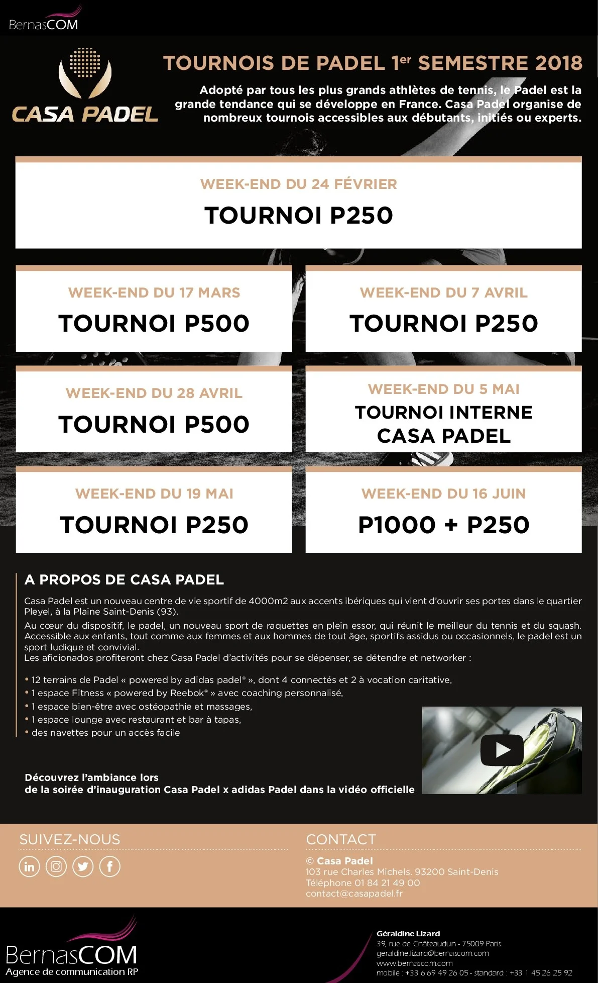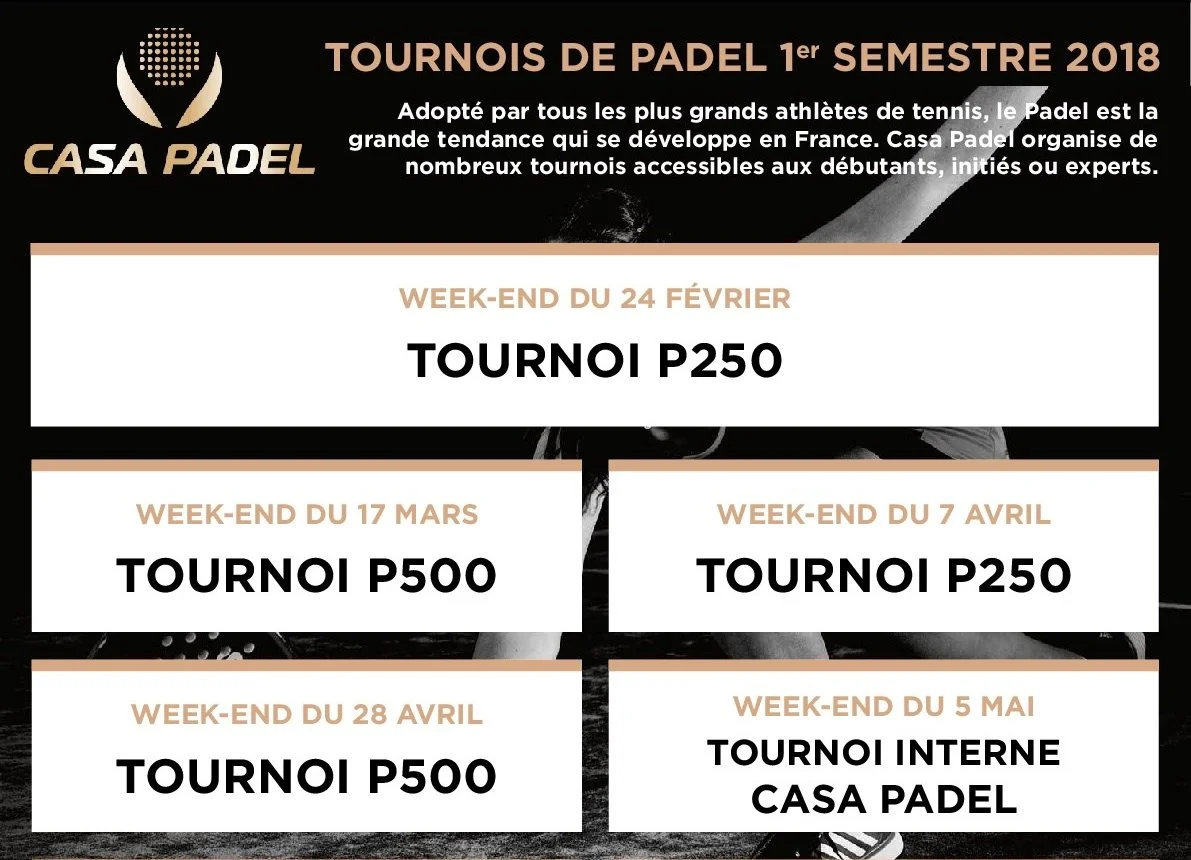 Le club de padel parisien, Casa Padel, avec ses 12 terrains de padel indoor, nous propose un premier semestre très caliente avec de nombreuses épreuves pour tous les types de joueurs.