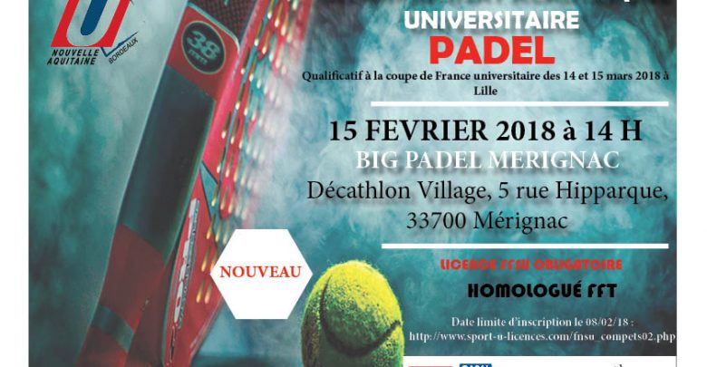 C’est le BIG PADEL de Bordeaux qui montre la voie en accueillant le 15 février à partir de 14h une étape du championnat académique universitaire de padel.