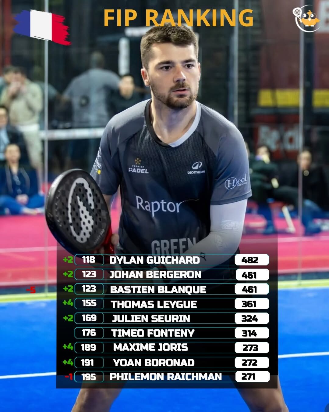 Demi-finaliste au FIP Bronze Agadir, Dylan Guichard poursuit sa montée en puissance. Il gagne deux places et confirme sa place de n°1 français, pointant désormais au 118e rang mondial avec 482 points.