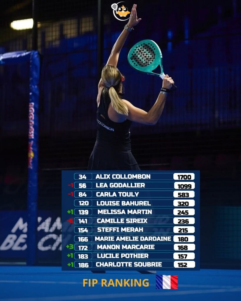 Alix Collombon conserve sa 34e place mondiale et reste largement la patronne du padel français féminin.