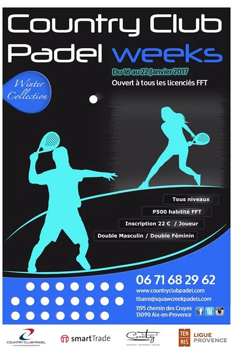 Venez assister du 16 au 22 janvier, au premier tournoi de Padel P500 homologué de la ligue de Provence 2017 qui réunira pratiquement tous les joueurs de l’équipe de France ainsi que des joueurs Espagnols du World Padel Tour.