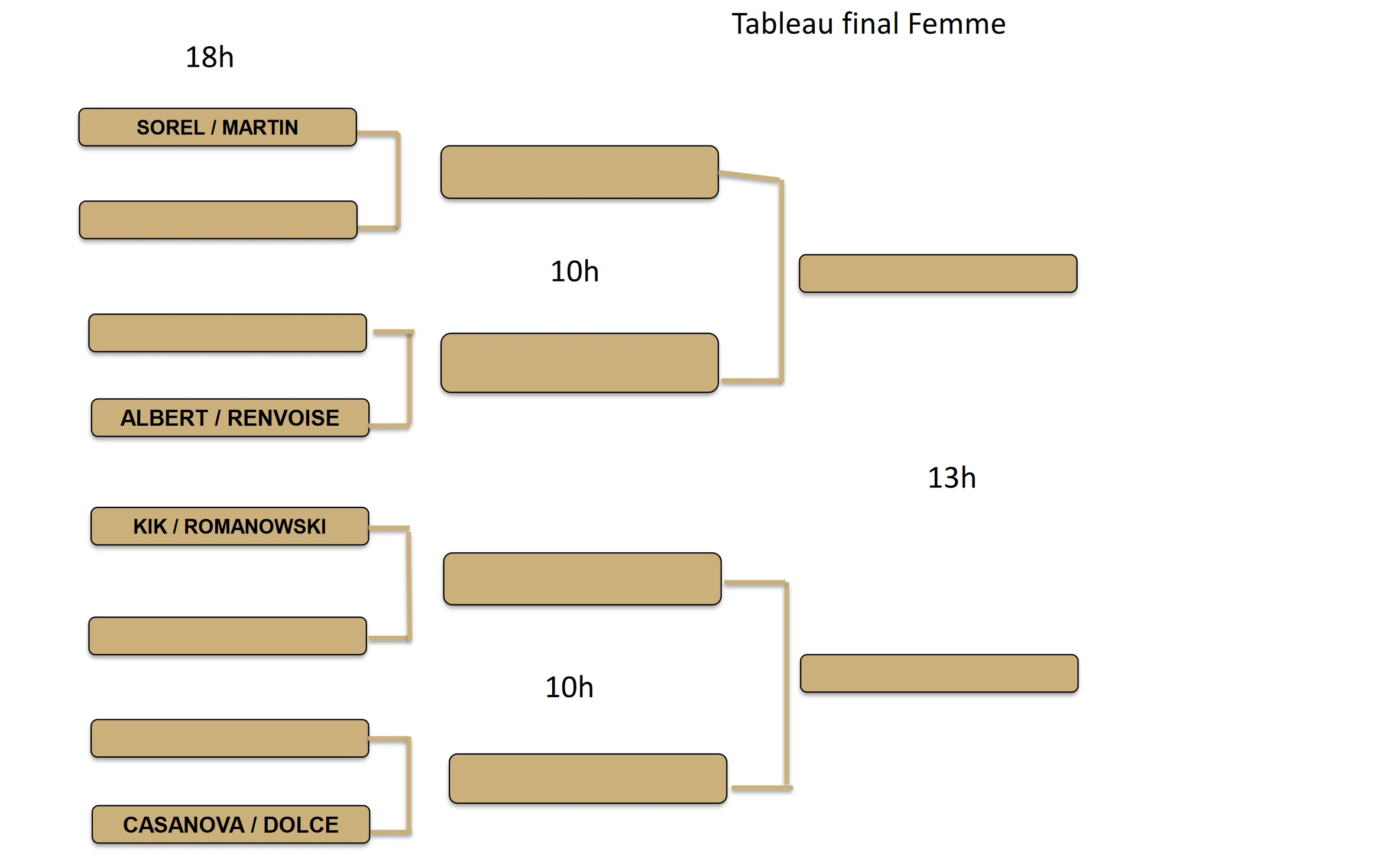 Chez les dames,la finale peut venir du bas du tableau avec une possible demi-finale Romanowski / Kik vs Casanova / Dolce. Dans le haut du tableau, les favorites du tournoi devraient accéder à la finale plus tranquillement.