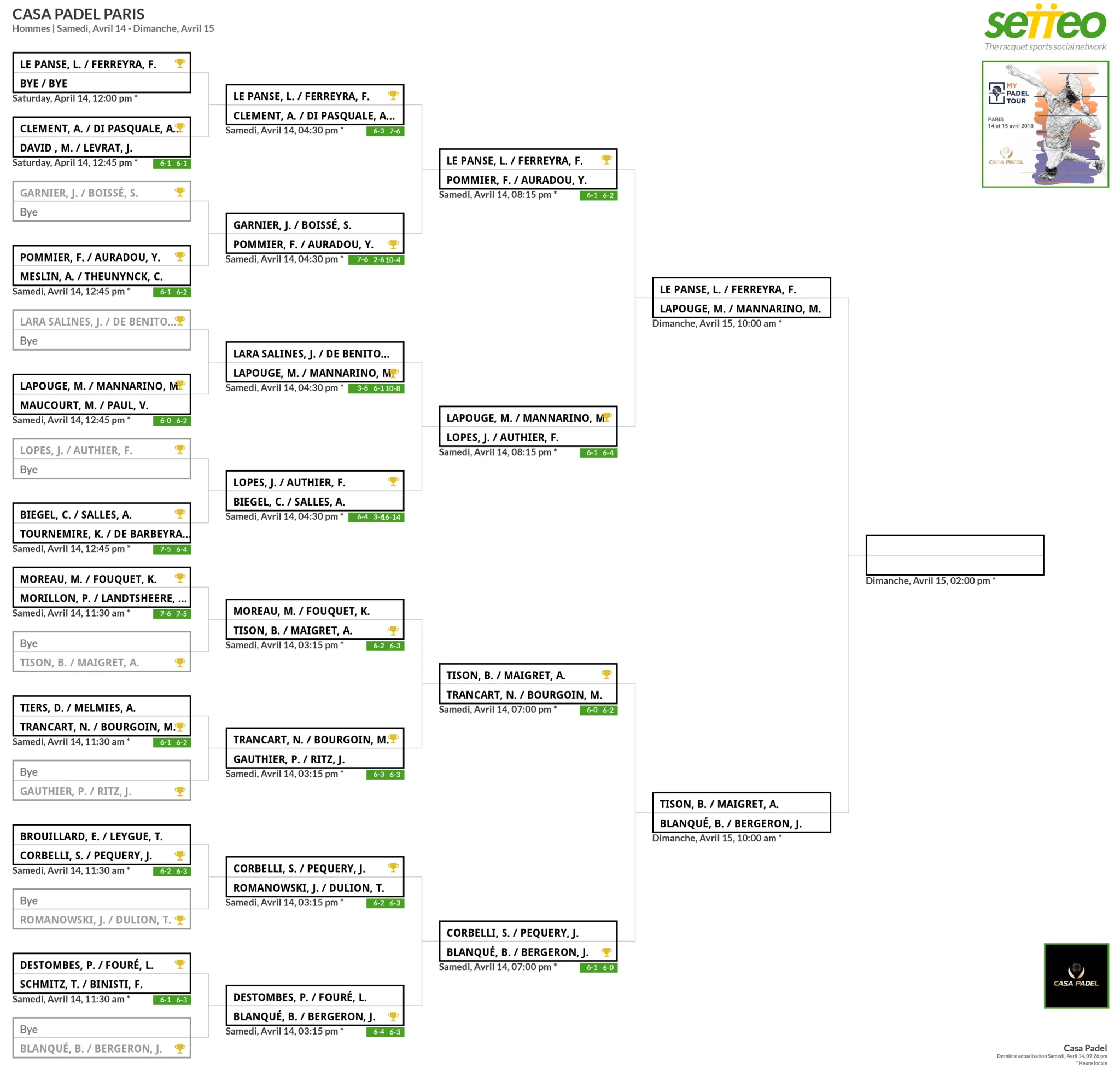 La Panse / Ferreyra vs Lapouge / Mannarino et Blanqué / Bergeron vs Tison / Maigret