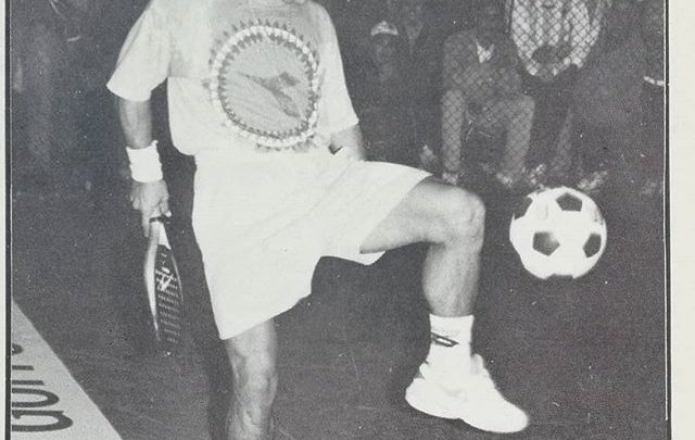Notez également que le ballon de foot n’est jamais loin, même s’il est sur un terrain de padel, des terrains avec un grillage à l’ancienne et sur du dur. Car en effet à l’époque il n’y avait pas de moquettes.
