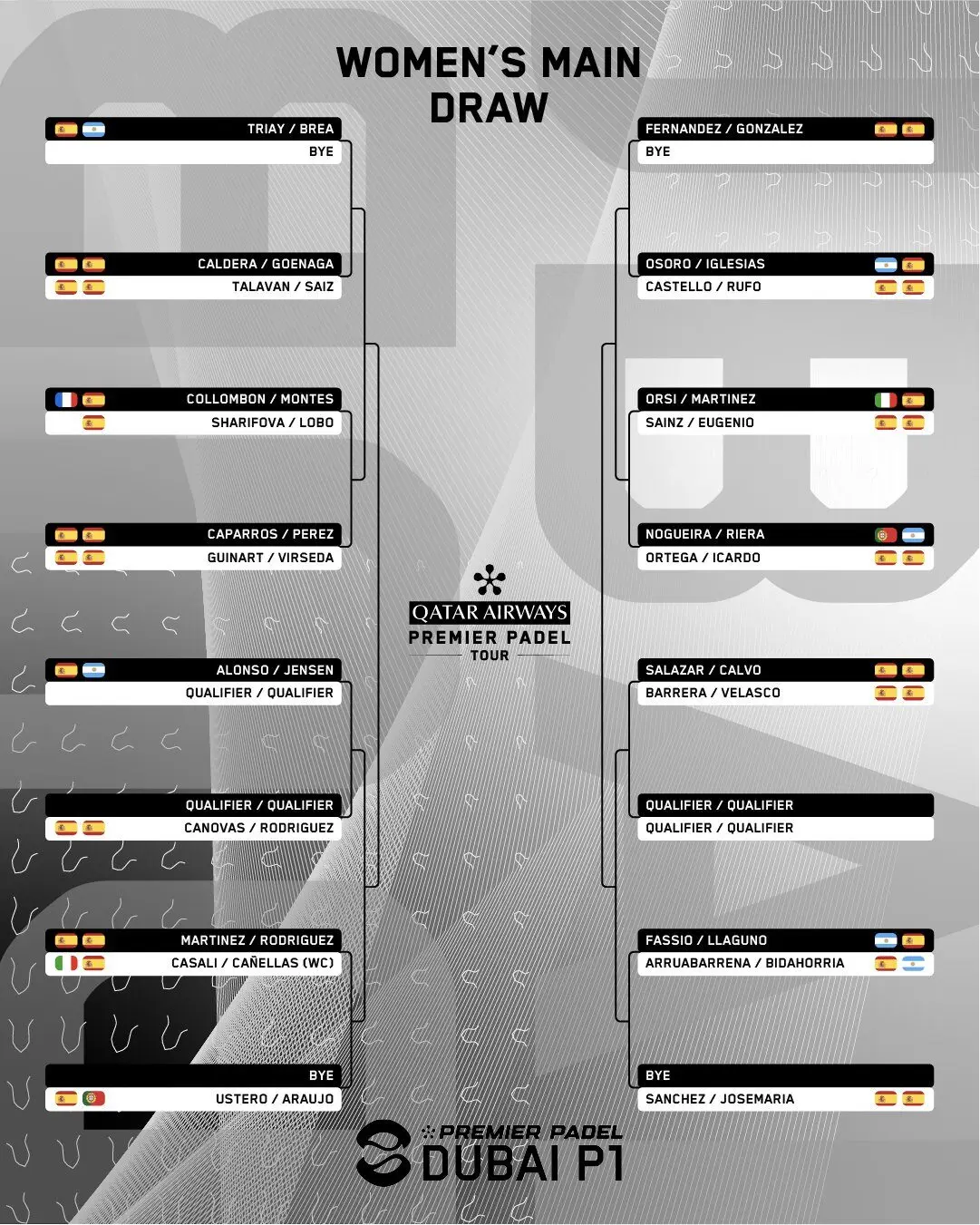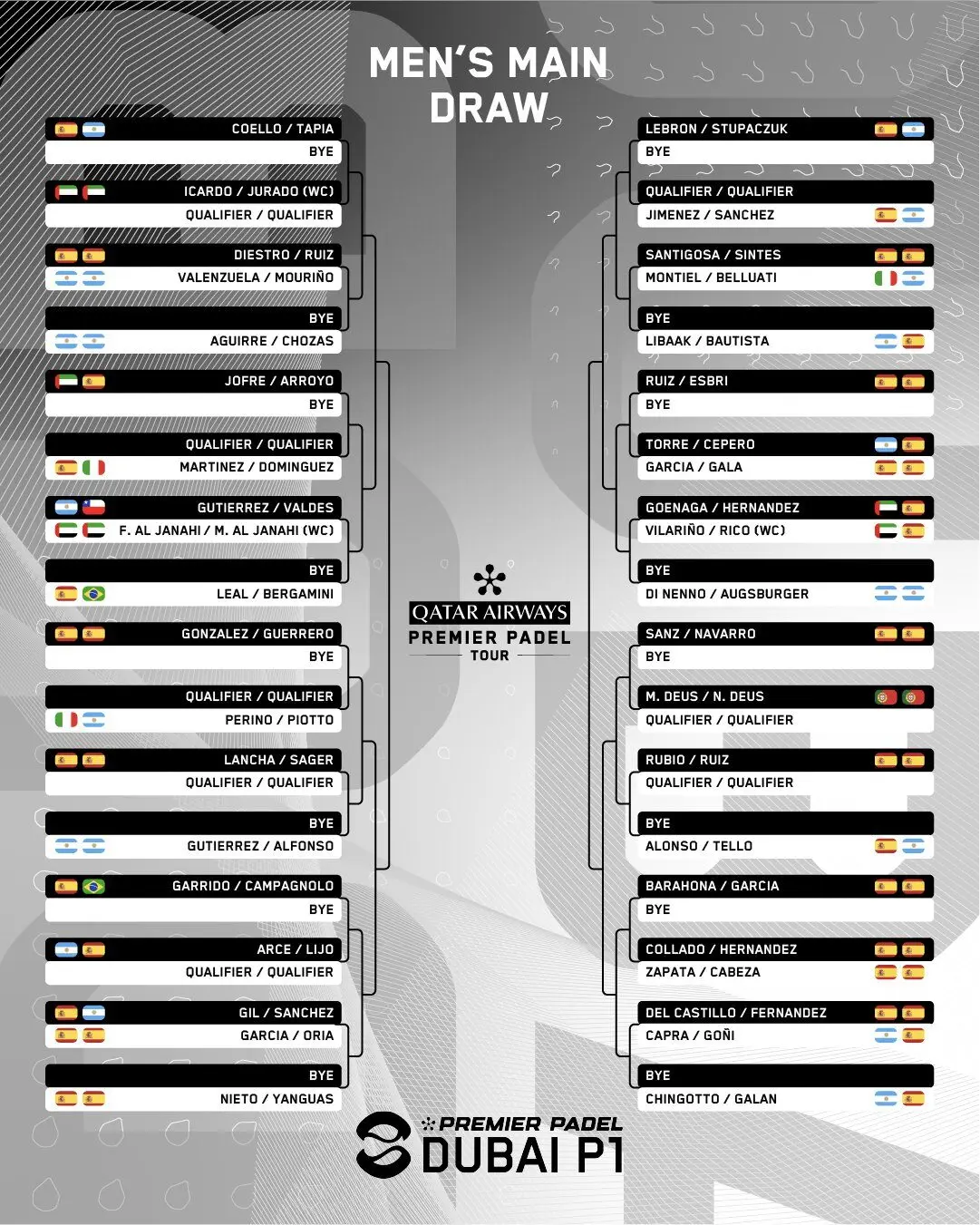 La grande histoire de ce Dubaï P1, c’est aussi la dernière apparition du duo Juan Lebrón / Franco Stupaczuk avant leur séparation. La tête de série n°3 affrontera pour leur entrée en lice José Jiménez et Maxi Sánchez Blasco, ou une paire issue des qualifs.