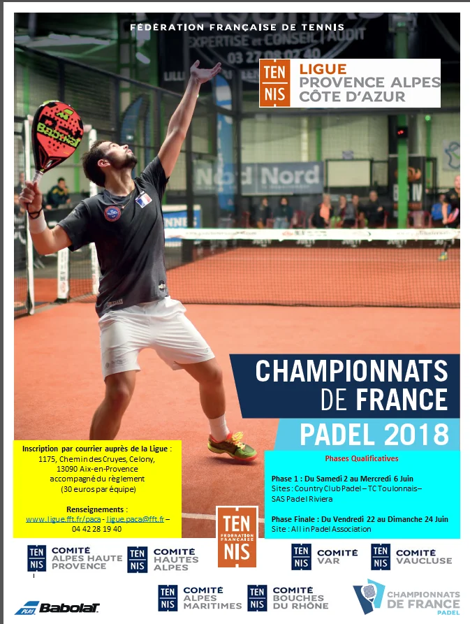 L’inscription à ce championnat PACA de padel se fait par courrier accompagné du règlement (30 euros / équipe). Adresse : Ligue de Provence-Alpes-Côte d’Azur, 1175 Chemin des Cruyes, 13090 Aix-en-Provence.
