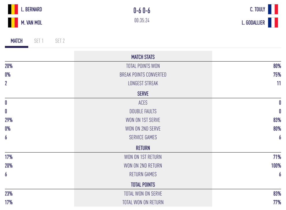 Sur le premier match, Carla Touly et Léa Godallier n’ont laissé aucune chance à leurs adversaires Laura Bernard et Michelle Van Mol.