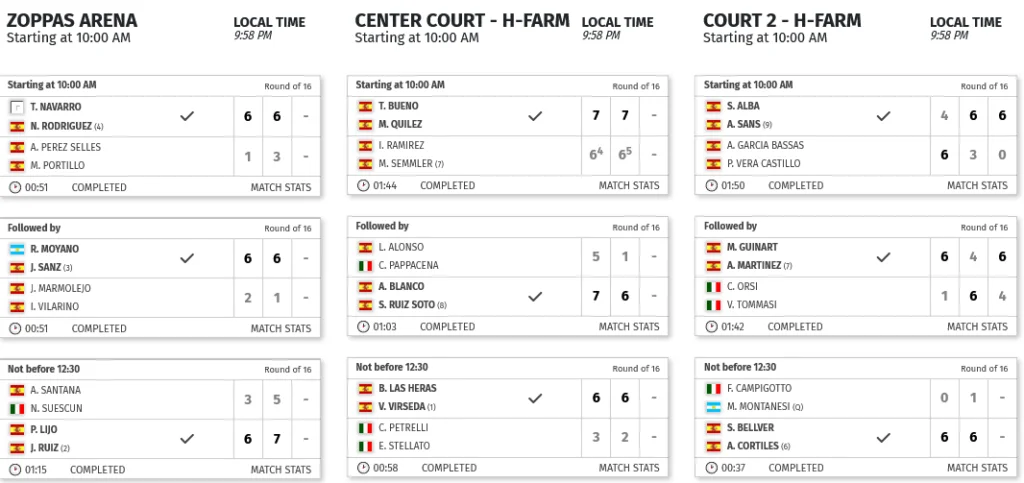 Les favoris ont fait le travail aujourd’hui en Italie, la seule petite surprise du jour est à mettre à l’œuvre de Toni Bueno et Marc Quilez qui ont écarté Ivan Ramirez et Miguel Semmler dans un match particulièrement intense : 7/6 7/6.