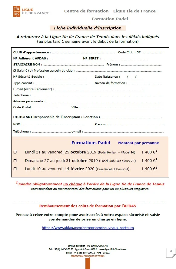 La ligue de tennis Île de France propose des formations padel en octobre 2019 et février 2020 en partenariat avec Padel Tennis Academy et Cédric Carité.