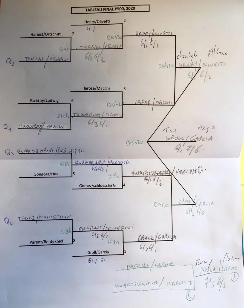 Le second set est une autre affaire. Clairement, le match que nous attendions entre les deux premières paires alsaciennes débute à ce moment là. Si Groll / Garcia ralentit peut-être un peu la cadence, c’est surtout Henry / Olivetti qui réussit à lancer leur finale.