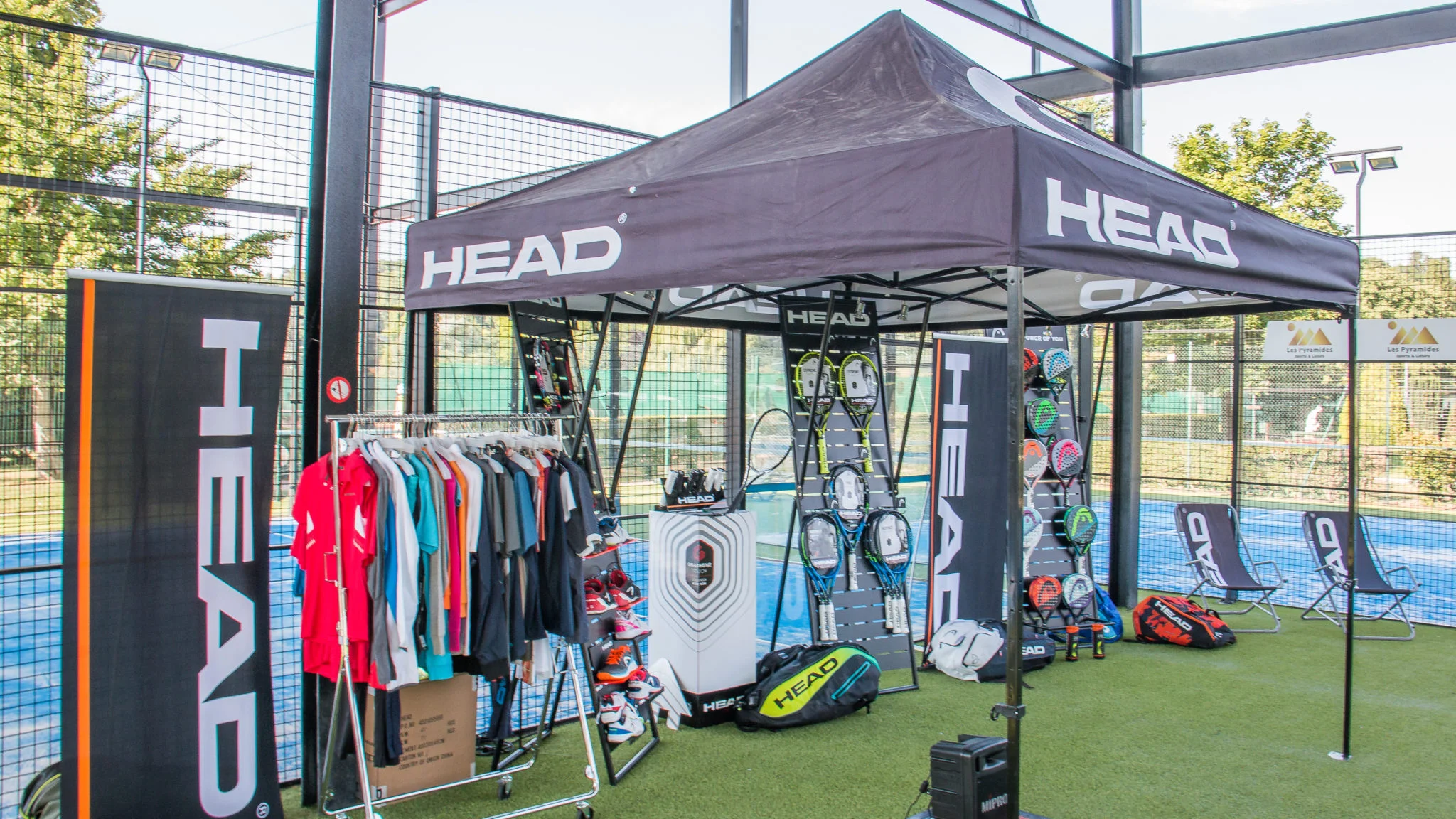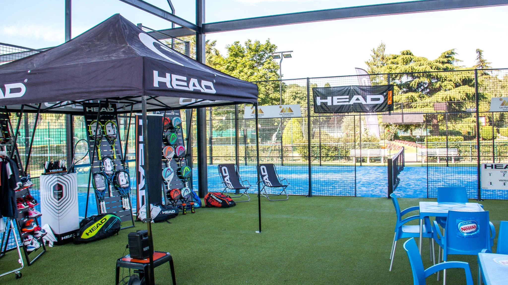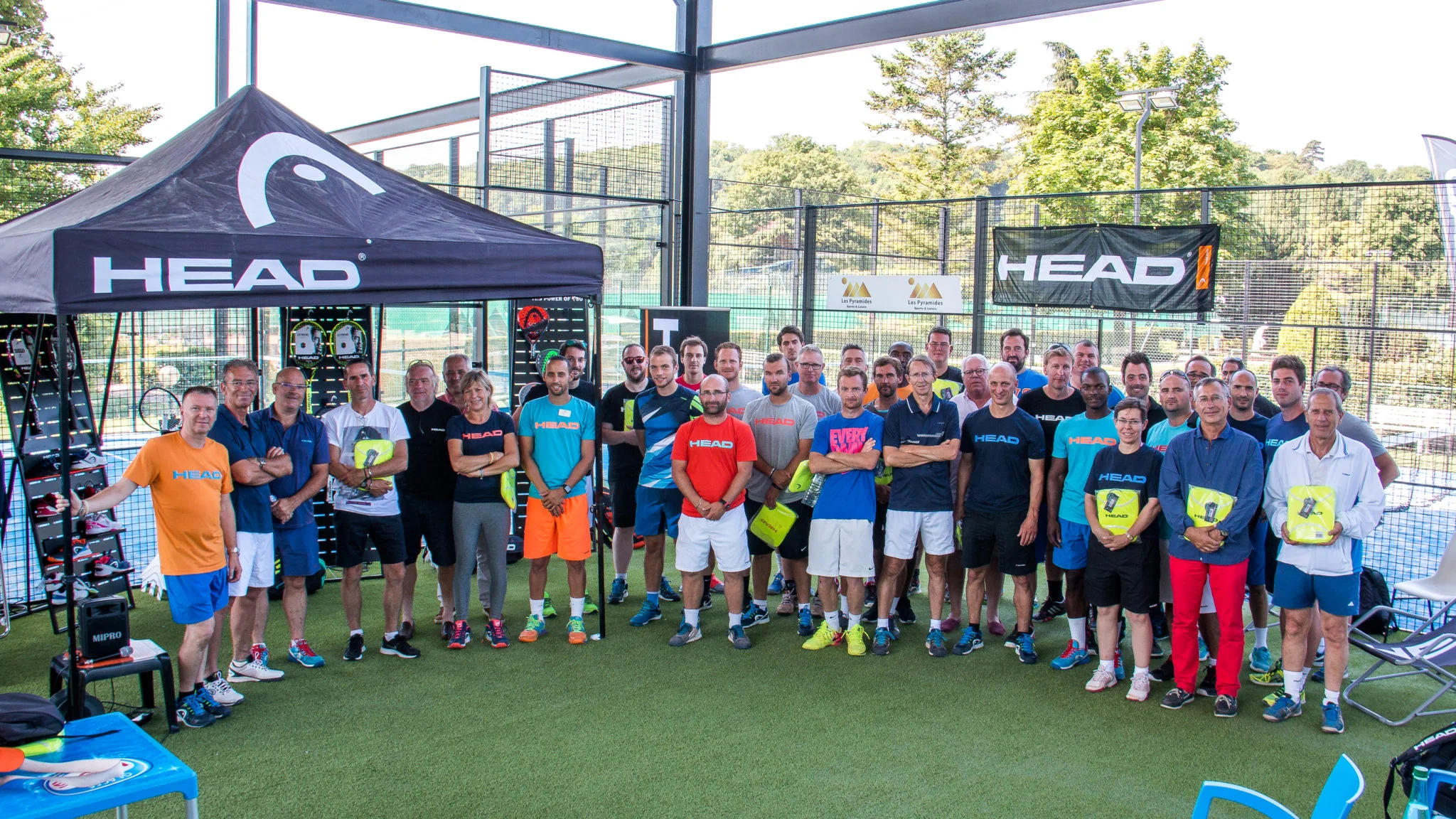 Présidents de clubs et professeurs de padel et de tennis étaient présents pour tester le nouveau matériel de padel sur les 3 terrains de padel. Head avait d’ailleurs aménagé l’espace pour accueillir les représentant des clubs.