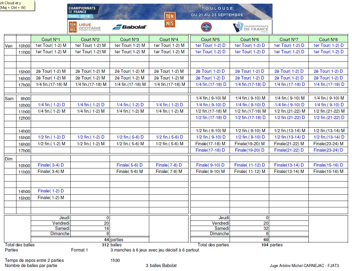 Retrouvez les horaires et la programmations des matchs pour les championnats de France de padel 2018 au Toulouse padel Club.