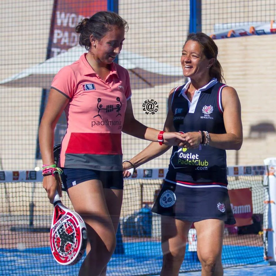 Béa est une jeune cadette de 14 ans originaire de Malaga et Paula, à 42 ans, est une immense championne de padel avec 8 titres de championne du monde (3 en tournoi open et 5 avec la sélection Argentine). Sur le court, Béa joue à gauche de Paula .