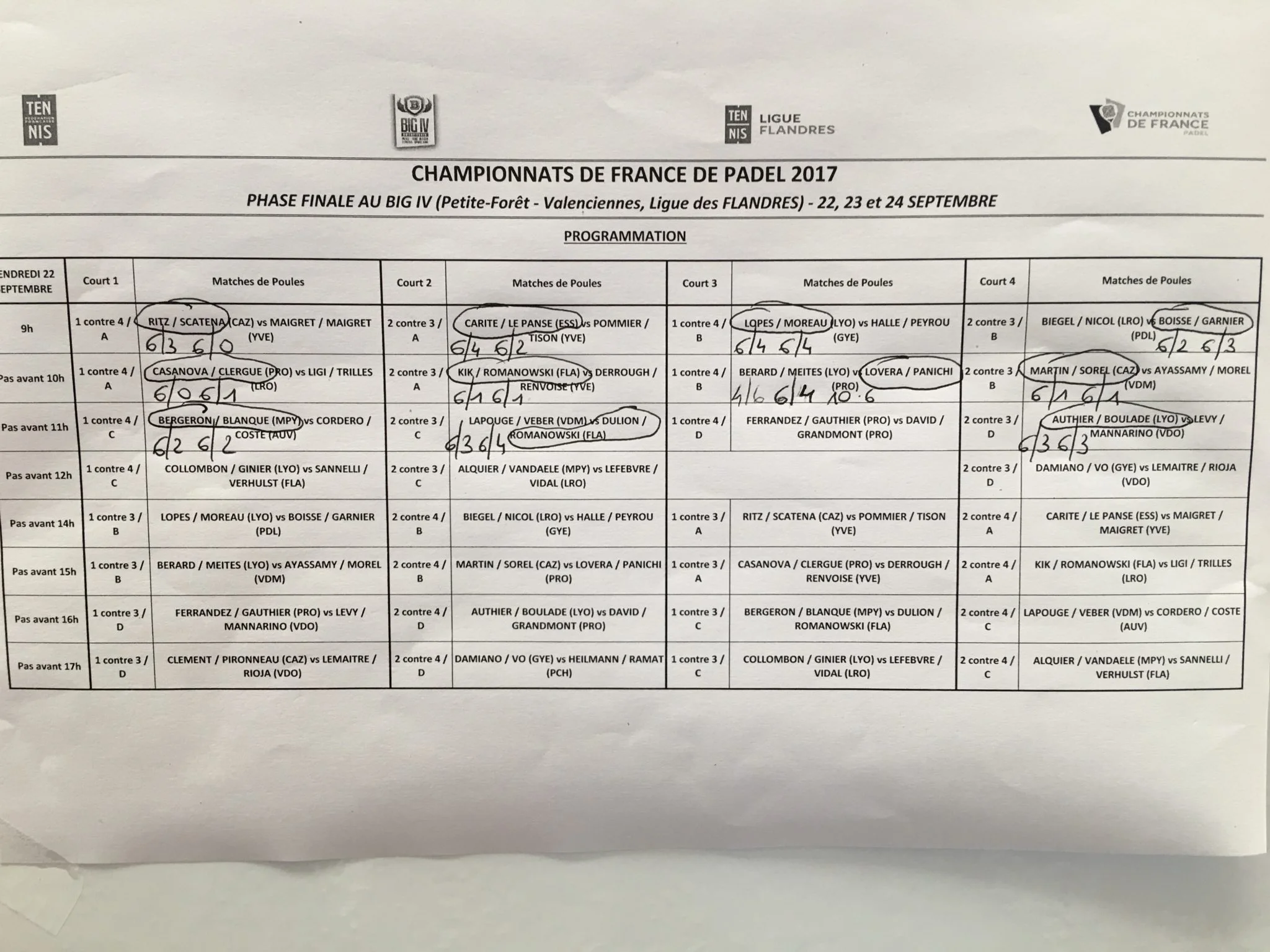 Ci-dessous tous les résultats de la première journée des championnats de France de padel avant 13h.