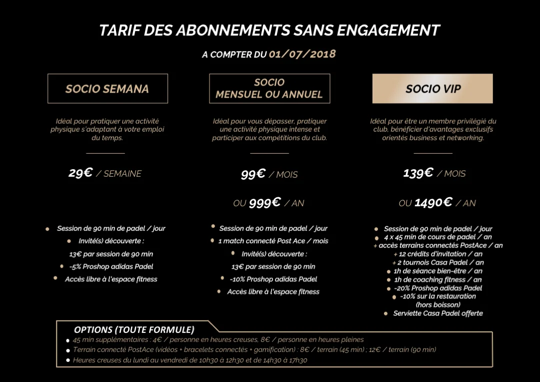 En plus du nouvel abonnement Socio Semana, Casa Padel annonce une nouvelle tarification qui évoluera à partir du 1er juillet au niveau des carnets de tickets ainsi que des abonnements !
