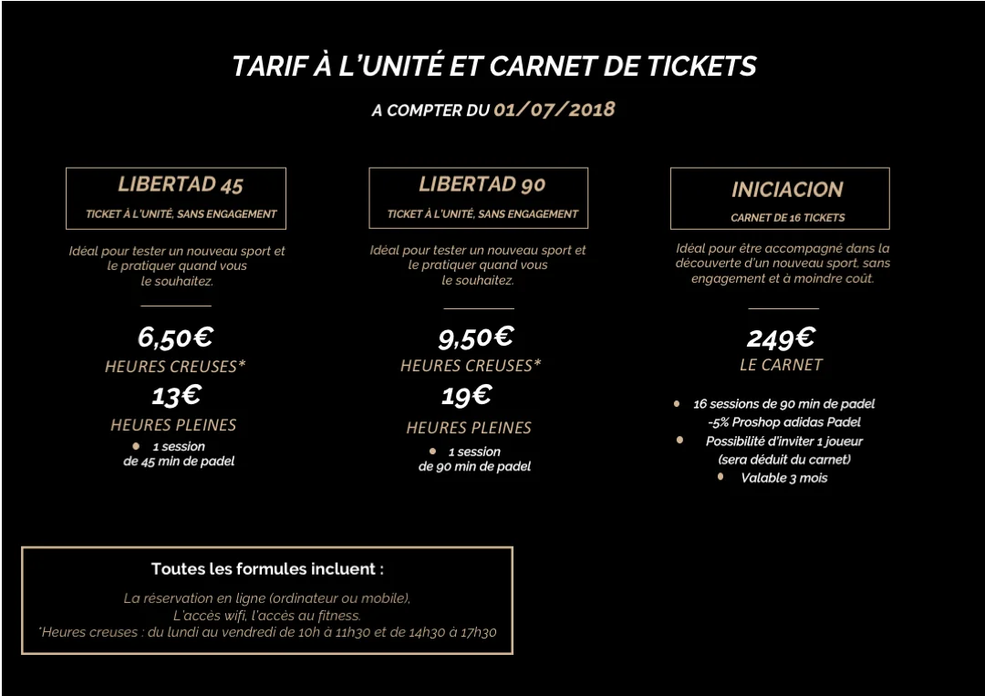 Les nouveaux tarifs Casa Padel