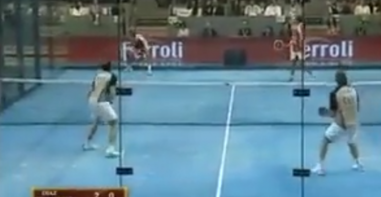Juan Martin Diaz réalise un coup de défense lors d’un match comptant pour le Padel Pro Tour impressionnant.