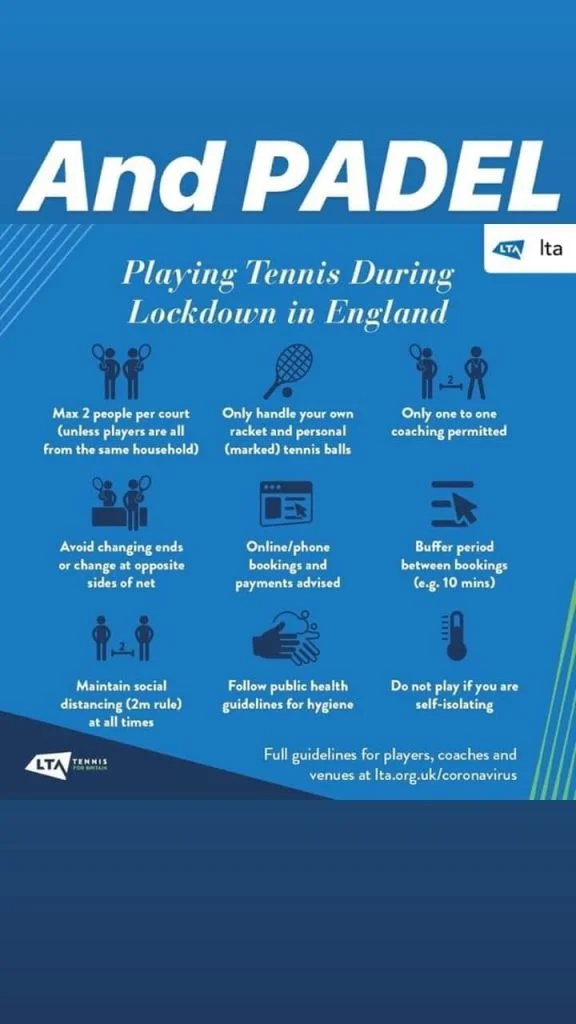 C’est Kristina Clément la directrice Export de NOX PADEL qui résume la situation : “Après la Suisse, la Belgique, l’Italie, l’Espagne, c’est maintenant au tour de la LTA (la Féderation de.Tennis anglaise) d’annoncer ce soir le retour possible sur les courts de padel outdoor en 1 contre 1 à partir de demain….”