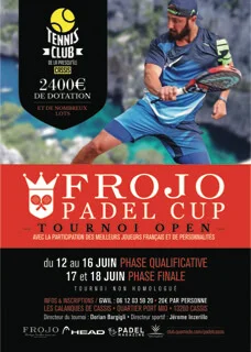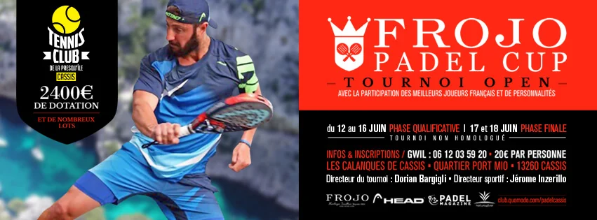 Le Padel club de la presqu’ile de Cassis représenté et dirigé par Dorian Bargigli et présidé par Jacky Barnault a l’honneur de vous présenter la Frojo Padel cup qui se déroulera du 12 au 18 juin 2017.