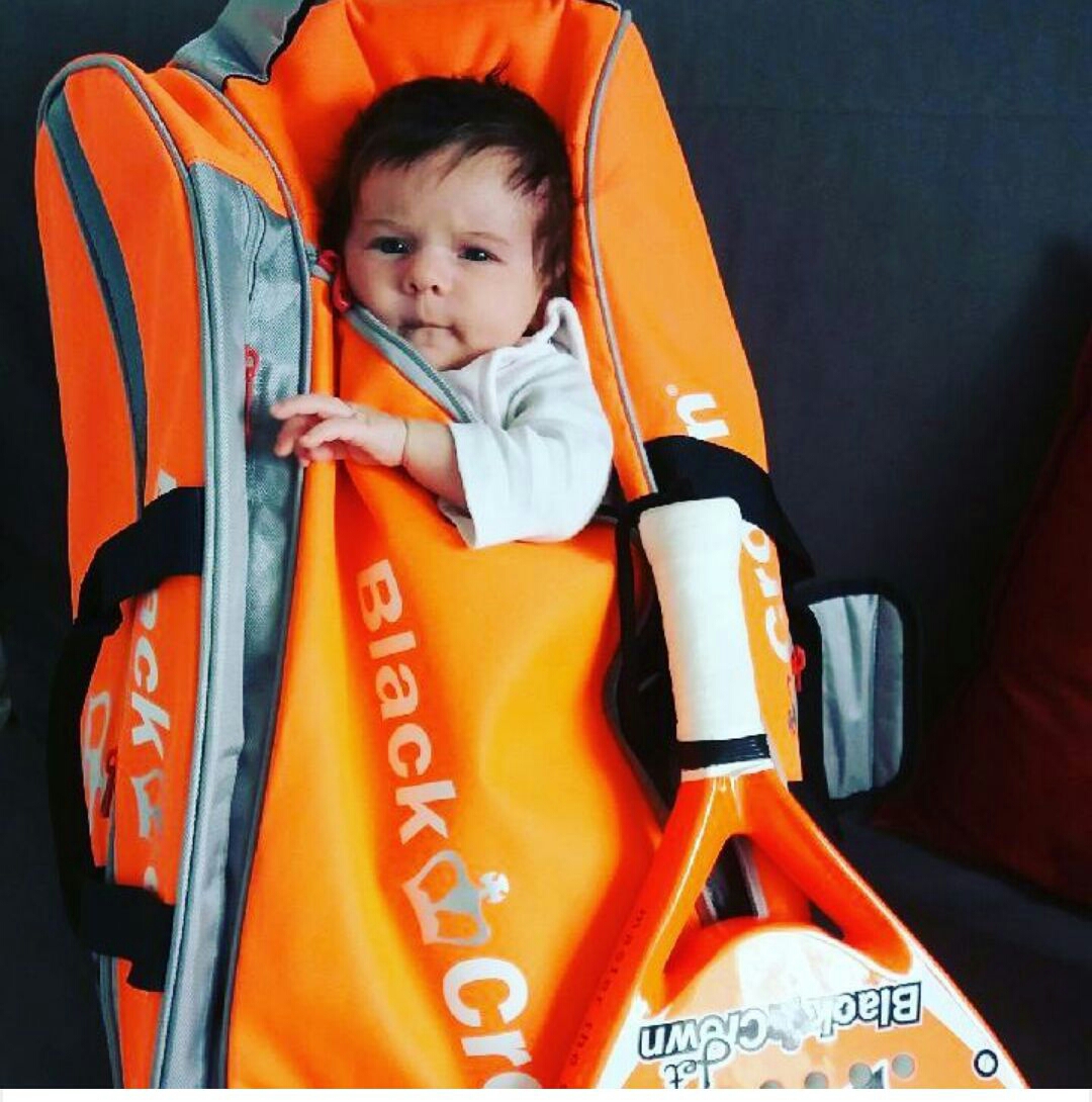 Depuis leur premier jour, on les sensibilise au padel, il n’a pas vraiment le choix avec les raquettes de padel déposées dans la poussette.
