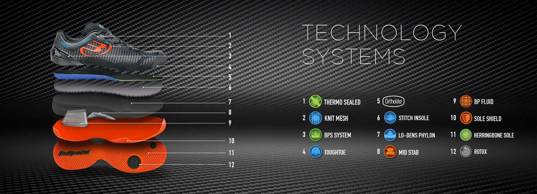 Amorti talon “bp fluid”. Absorption des impacts. Atténue le coup et l’impulsion.