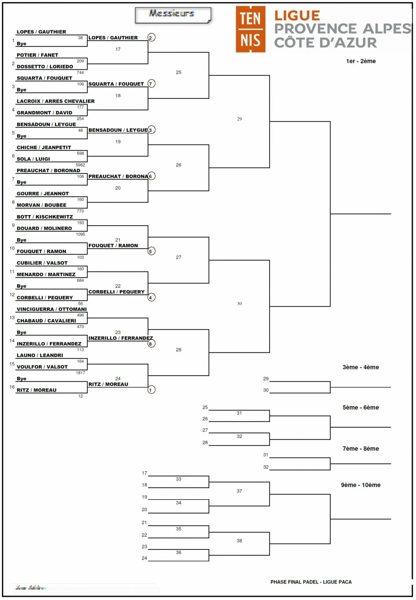 Les messieurs ne sont pas en reste avec un énorme plateau. Là aussi, la concurrence s’annonce rude. Et on entrevoit déjà un beau 1/4 entre Ritz / Moreau et Ferrandez / Inzerillo. Pas de chance pour ces derniers qui rencontrent les favoris de l’épreuve, même si on sait que Jérémy Ritz et Max Moreau se cherchent encore. Dans le haut du tableau, il y a évidemment les incontournables Justin Lopes et Pier Gauthier en tête de série 2.