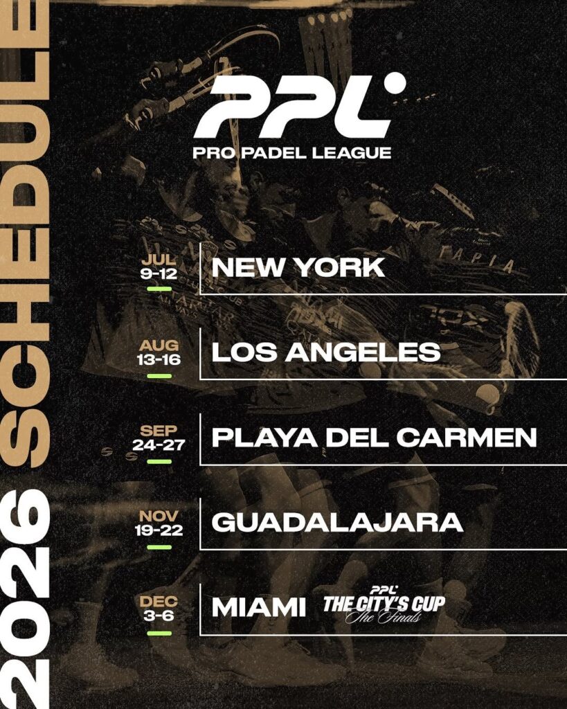 Pour 2026, la Pro Padel League a prévu un calendrier en cinq étapes en Amérique du Nord, avec des arrêts à :