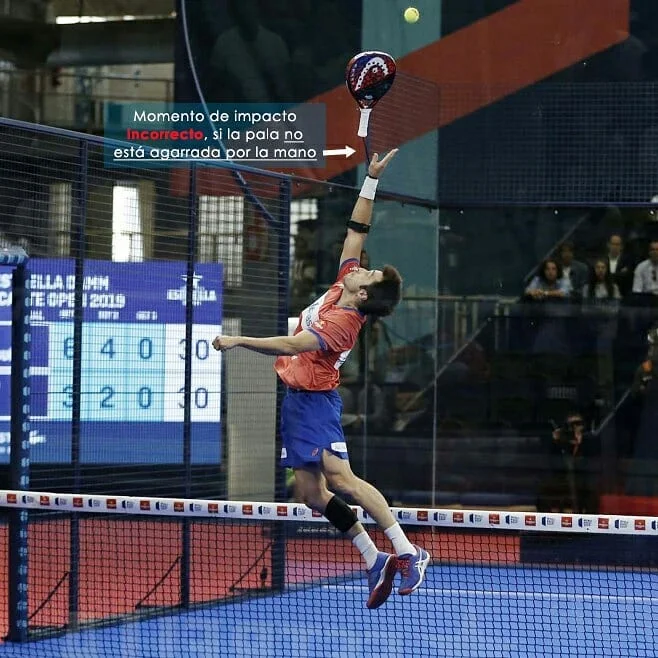 Il faut impérativement que la main soit collée au manche de la pala. Dans le cas contraire, la balle est faute.