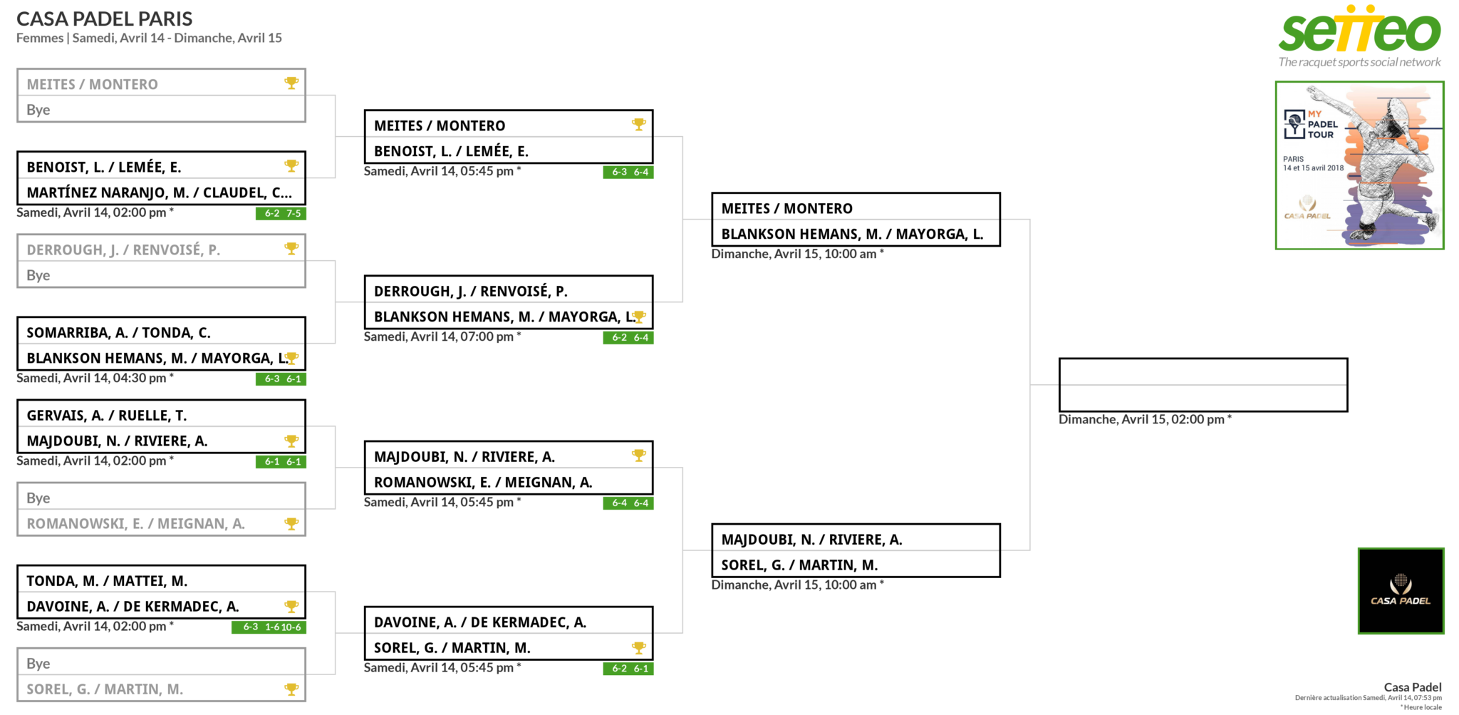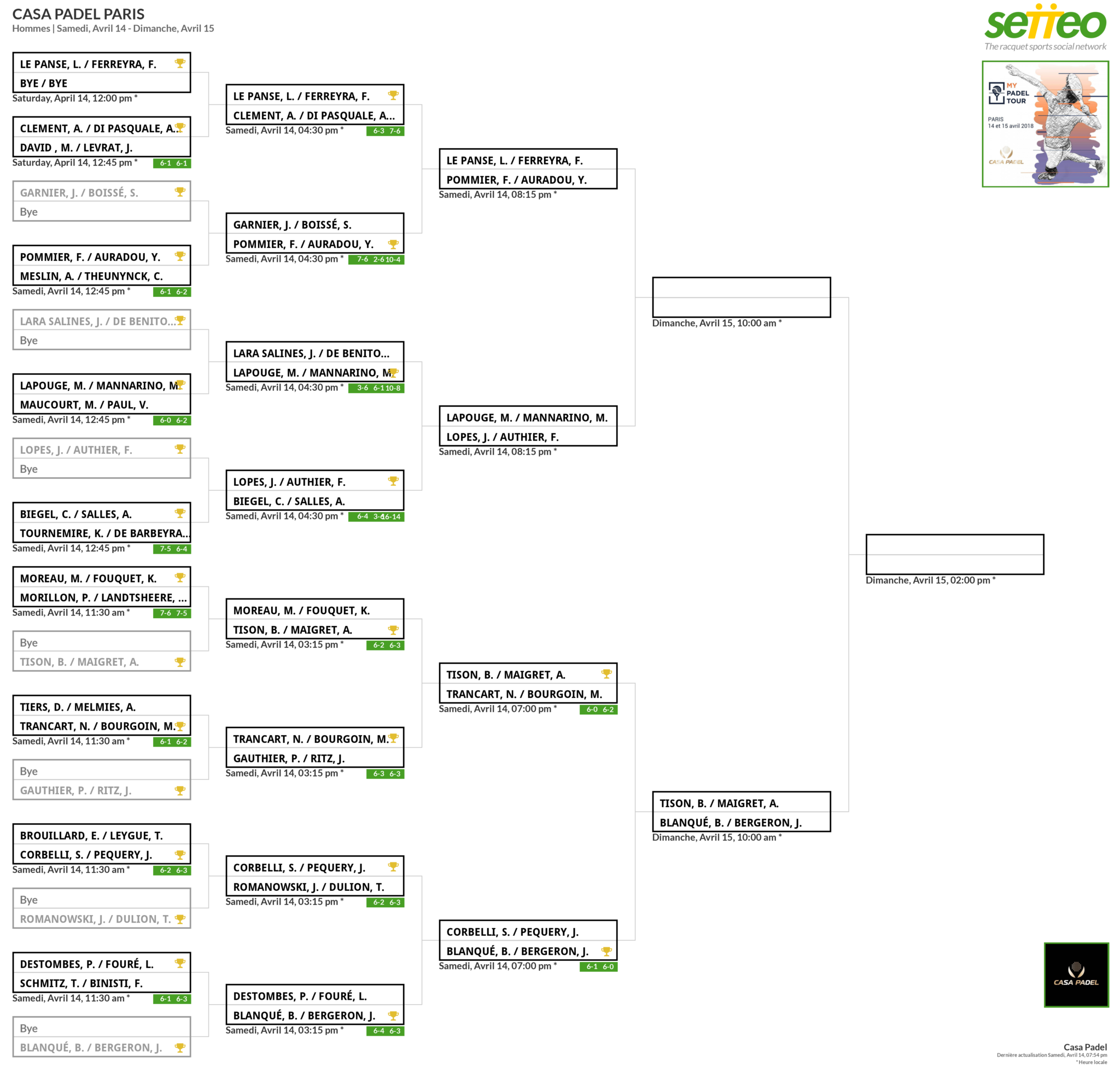 Les voeux des organisateurs et du public ont été exaucés, nous aurons bel et bien une demi-finale explosive : Bergeron / Blanqué vs Tison / Maigret.