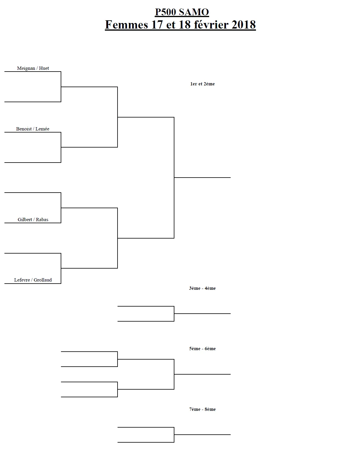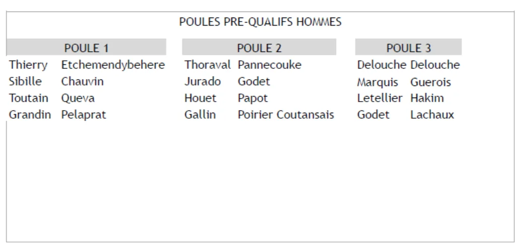Les places des qualifiés seront tirées au sort à l’issue des matchs de poules Les 4 équipes femmes qui ne sont pas placées dans le tableau final seront également positionnées par tirage au sort samedi soir.