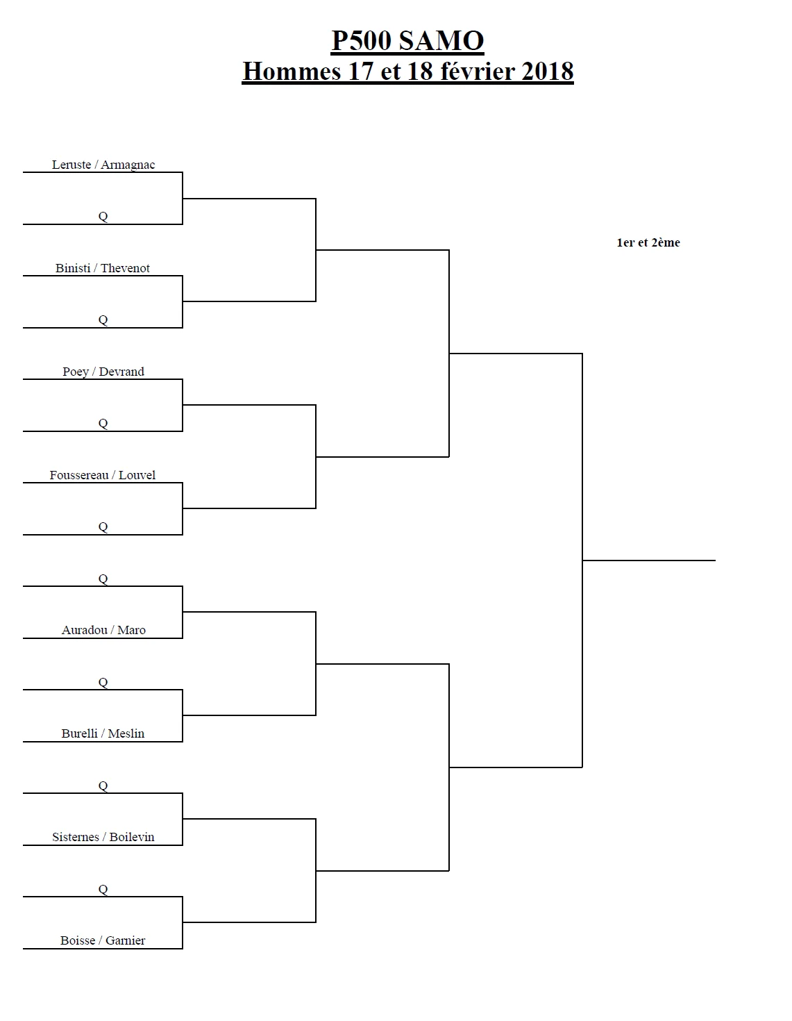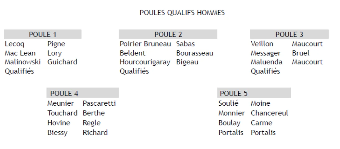 Pour les non qualifiés du samedi matin et du samedi après midi, une consolante sera proposée le samedi à partir de 18h30.